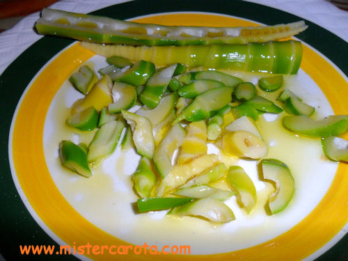 Per unire l'utile (contenere l'espansione incontrollata del bambù) al dilettevole (cibarsi di una verdura insolita) ho deciso di recidere tutti i germogli che tentano di invadermi le aiuole o il prato e di prepararli per renderli commestibili.